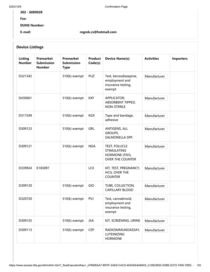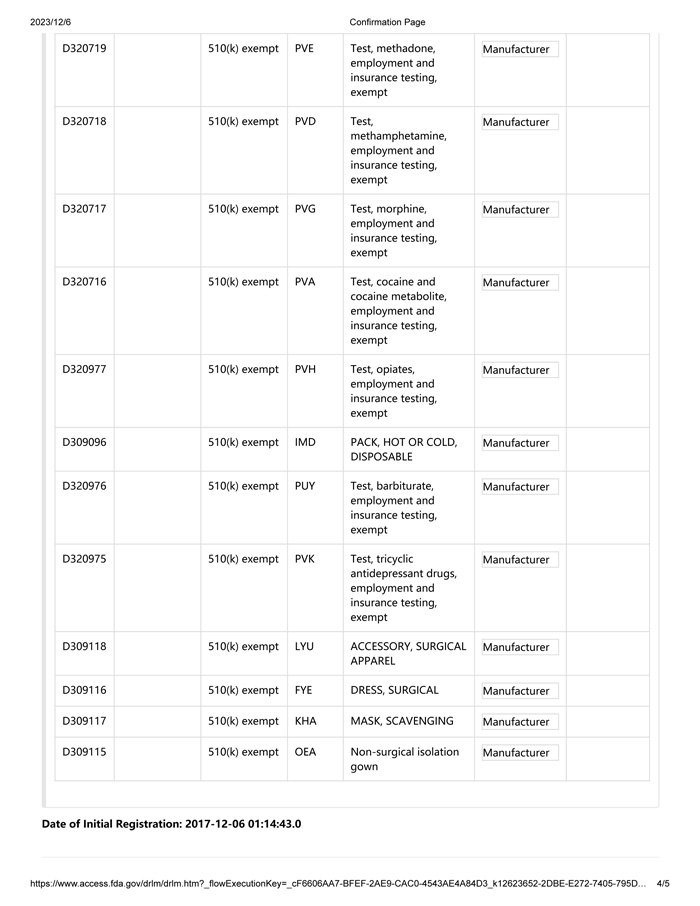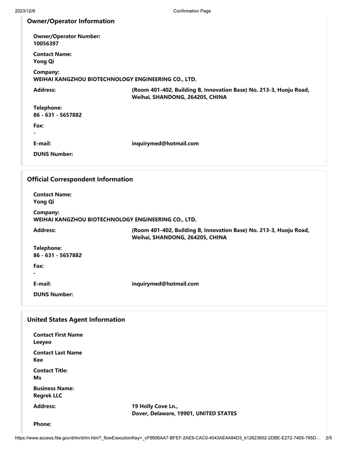 FDA Registration Certificate for 2024